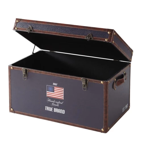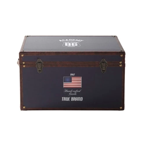 Pour ranger tous vos trésors, optez pour cette grande malle en toile bleue PRINCETON dotée d’une belle contenance. Imprimé du drapeau américain sur le devant, ce coffre de rangement peut également servir de bout de canapé ou de petite table d’appoint au salon. Avec son look sobre et classique, cette malle déco trouvera aussi sa place dans une chambre d’enfant.