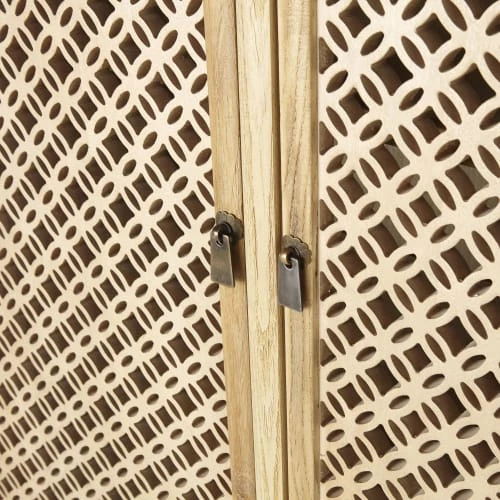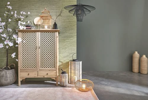 Et si vous apportiez un peu d’exotisme et de poésie à votre intérieur ? Grâce au cabinet de rangement 2 portes 3 tiroirs en pin recyclé NAOKI, votre déco ne manquera ni de charme ni d’originalité ! On craque pour ses portes en bois sculpté qui laisseront légèrement entrevoir vos trésors cachés. Doté d’étagères et de tiroirs, vous aurez tout l’espace nécessaire pour vos affaires. Ce meuble de rangement complètera à merveille un salon un brin bohème aux côtés d’un canapé en velours dans une teinte rouge brique intense et une lanterne en fibre végétale. Qu’en pensez-vous ?