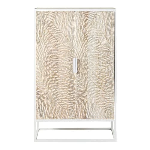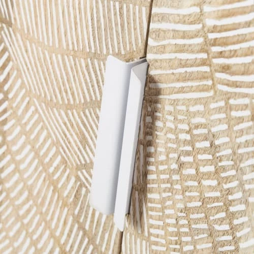 Portes : manguier massif sculpté à la main, peinture nitrocellulosique coloris blanc