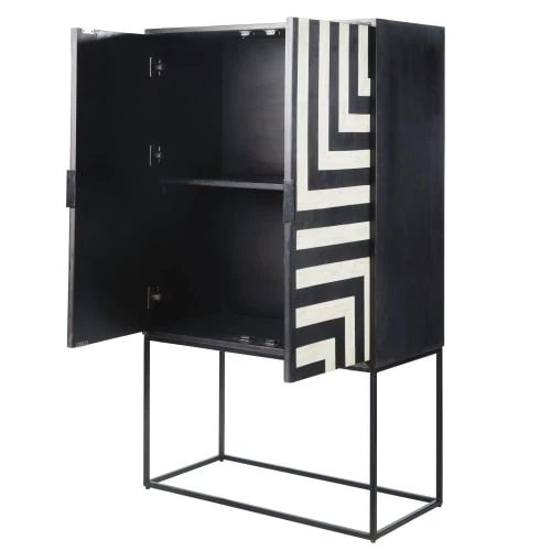 Portes (2) : panneaux de fibres de moyenne densité (E1) peinture nitrocellulosique col. noir et recouvert marqueterie d’os et résine