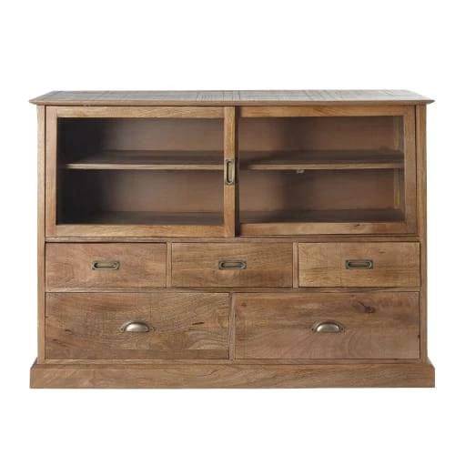 Structure, portes, tiroirs : manguier recyclé recouvert de vernis nitrocellulosique transparent