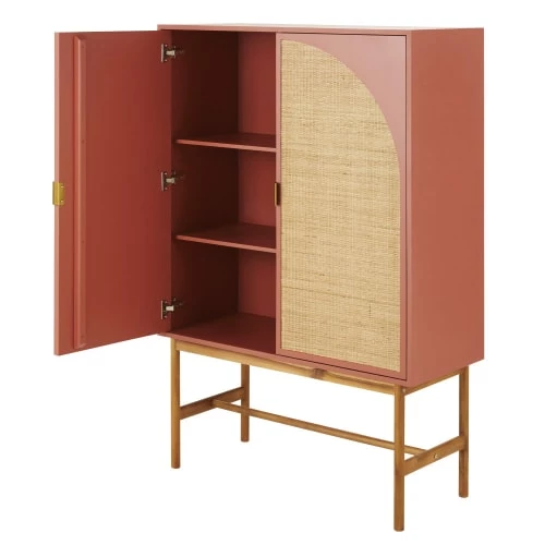 Portes: panneaux de fibres de moyenne densité (E1) peinture col. terracotta, finition mat, et tressage rotin