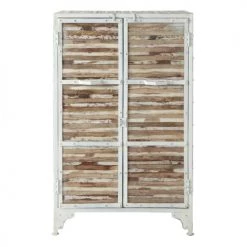 En métal et bois, ce cabinet blanc possède un espace de rangement avec 2 étagères intérieures. Avec ses teintes naturelles, ce cabinet complètera facilement votre ambiance bord de mer.