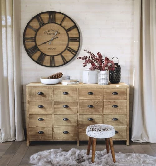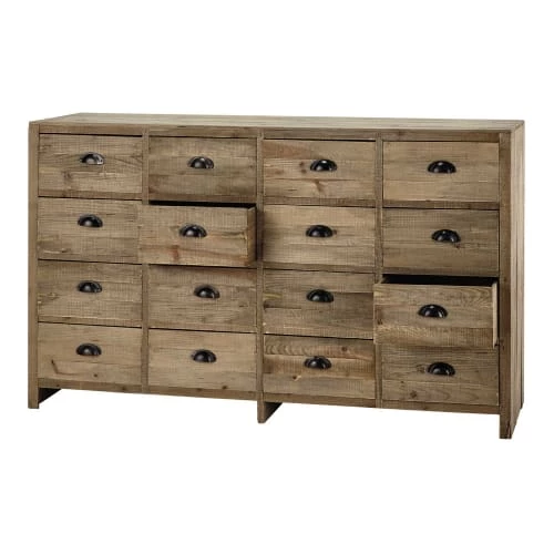 Avec son bois brut et chaleureux, le cabinet de rangement en sapin WOODPECKER apportera une note d’authenticité à votre intérieur. Pour le rangement, ce cabinet en bois vous propose 16 tiroirs pour organiser toutes vos affaires ! Notre conseil : pour renforcer votre ambiance chalet, choisissez du rouge et de la fausse fourrure pour habiller votre lit.