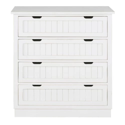 Finition : peinture blanche léger coup de pinceau, effet légèrement patiné et vieilli sur les arrêtes