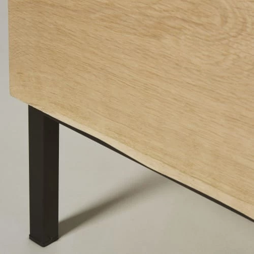 Panneaux (du dessus, dessous et de côtés) et fonds des tiroirs : panneaux de particules, placage chêne, finition vernis acrylique mat