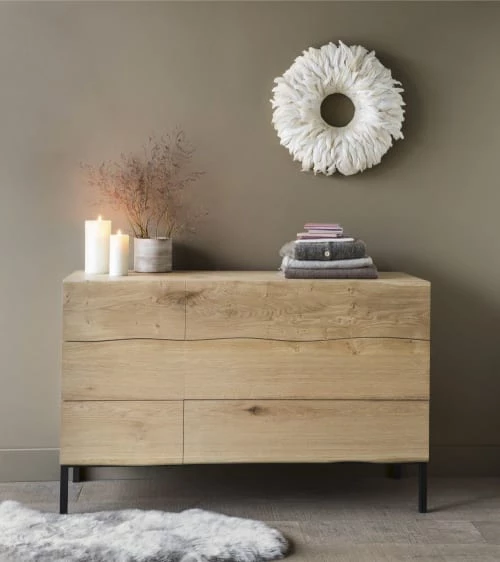 Découvrez l’art du bonheur à la danoise sur la commode double 6 tiroirs MAGNUS. Difficile de résister à son charme rustique, souligné par le veinage de son bois. Dans une chambre où les plaids doux se mélangent pour une ambiance hygge, cette commode ne pourra qu’être à sa juste place. N’hésitez pas à mettre en valeur vos objets déco favoris sur le dessus. On ne se refuse aucun plaisir au Royaume du Danemark !