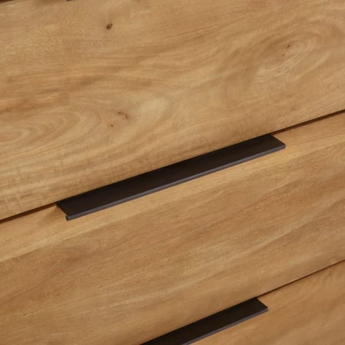 Structure, façade des tiroirs, panneaux de côté et du dessus : manguier massif, finition teinte claire