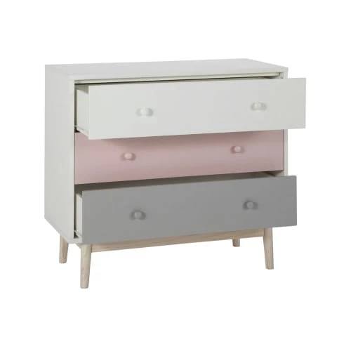Structure et tiroirs : panneaux de fibres de moyenne densité, coloris blanc, rose et gris