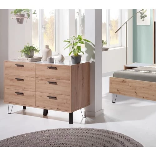 HOMN Commodes Et Cabinets Commode 3 Tiroirs Couleur Chêne, 77 Cm Largeur