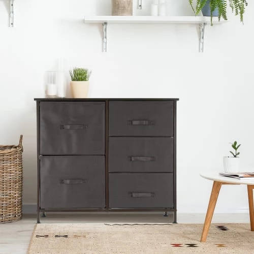 L’armoire à textiles multifonctionnelle avec 5 tiroirs de ML-Design a une construction en acier robuste avec un panneau MDF aspect bois et est parfaite pour votre salon, chambre à coucher, chambre d’enfant ou couloir. Grâce à sa conception peu encombrante, l’armoire offre un espace de rangement maximal sans prendre beaucoup de place.