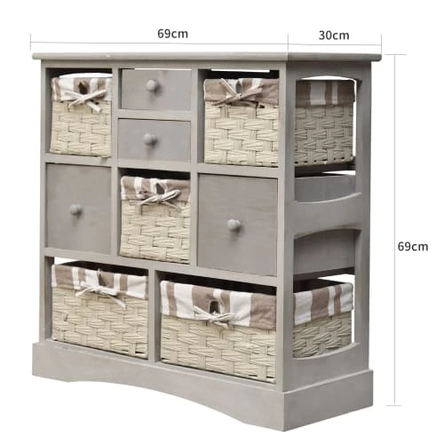 Casâme Commodes Et Cabinets Commode 3 Tiroirs Décor Chêne Et Façade En Rotin – L80 X P39 Cm