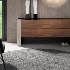 Angel Cerda Commodes Et Cabinets Commode Placage Noyer Et Cuir Recyclé Avec Tiroirs Soft Closing