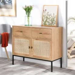 Casâme Commodes Et Cabinets Commode 2 Portes 2 Tiroirs Avec Cannage En Rotin – L90cm