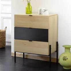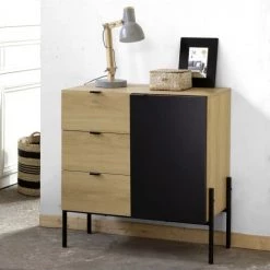 Casâme Commodes Et Cabinets Commode 3 Tiroirs Décor Chêne + 1 Porte Noire – 79cm