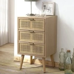 Casâme Commodes Et Cabinets Commode 3 Tiroirs Décor Chêne Et Façade En Rotin – L80 X P39 Cm
