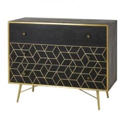 Maisons Du Monde Commodes Et Cabinets Commode 3 Tiroirs En Manguier Massif Noir Et Métal Doré