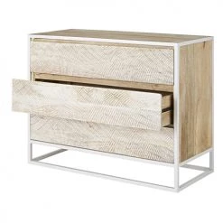 Maisons Du Monde Commodes Et Cabinets Commode 3 Tiroirs En Manguier Massif Sculpté Et Métal Blanc
