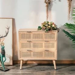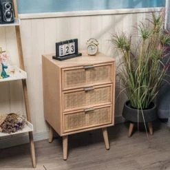 Nordlys Commodes Et Cabinets Chiffonnier 3 Tiroirs En Bois Et Rotin Naturel