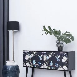 RNT By Really Nice Things Commodes Et Cabinets Commode En Pin Massif En Noir Et Imprimé Floral.