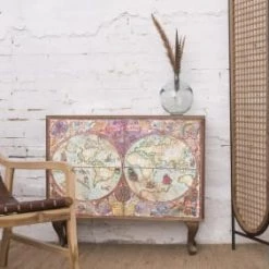 RNT By Really Nice Things Commodes Et Cabinets Commode En Pin Massif Imprimé Carte Du Monde.