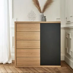 TEMAHOME Commodes Et Cabinets Commode Placage Gris Anthracite Et ChĂȘne Clair
