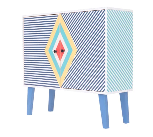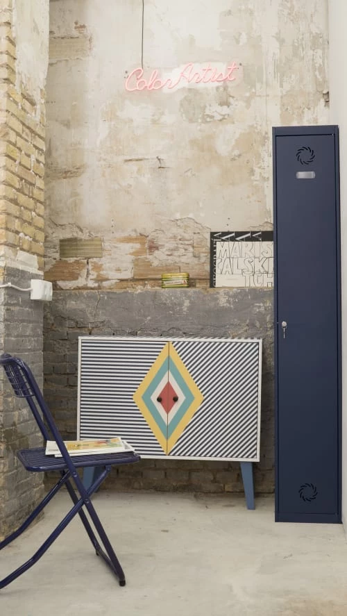 Pratique et original meuble auxiliaire avec 2 modules indépendants par un séparateur central.