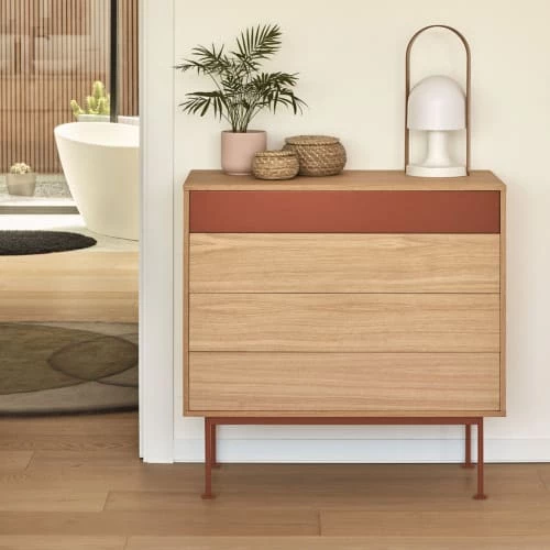 HOMN Commodes Et Cabinets Commode De Rangement 4 Tiroirs Couleur Blanc/bois, 80 Cm Longueur