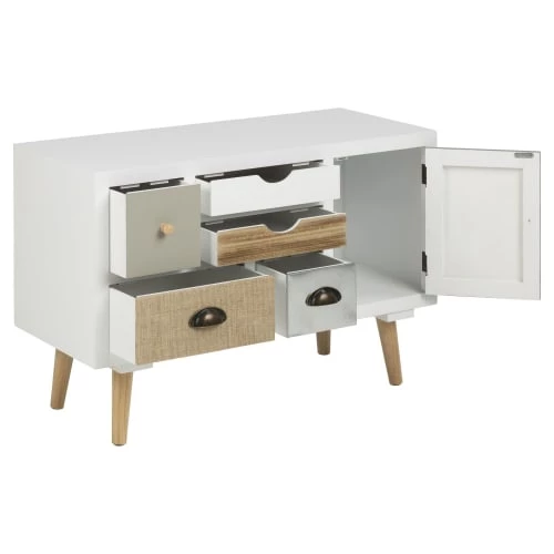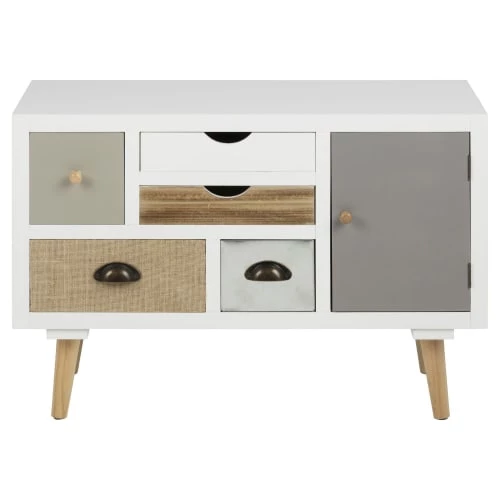 Casâme Commodes Et Cabinets Commode 2 Tiroirs 2 Portes Blanches Et Décor Bois