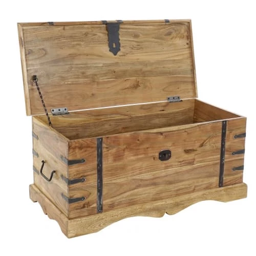 Wadiga Coffres Et Malles Grande Malle De Rangement En Bois Massif Acacia Sur Pied Taillé